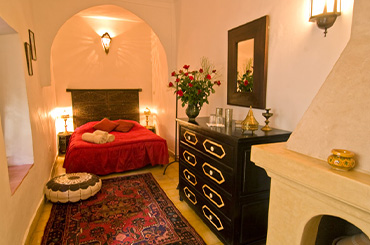 La suite des « Mille et une nuits » à la décoration orientale, air conditionné, lit double, salle de bain en tadellakt, avec douche et toilettes privées.